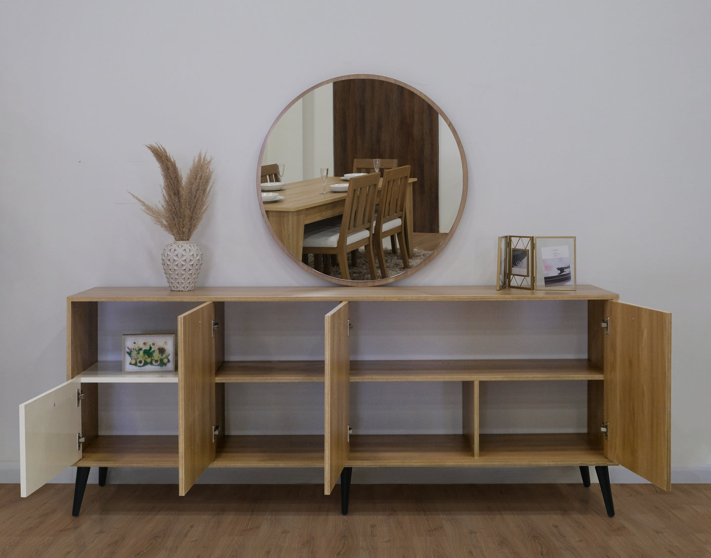 - يغطّي الخشب طبقة ميلامين أو PVC عازلة للحرارة والرطوبة، مما يحافظ على الأثاث لفترة أطول ويمنحه مظهراً أنيقاً بألوان عصرية تناسب جميع الديكورات.